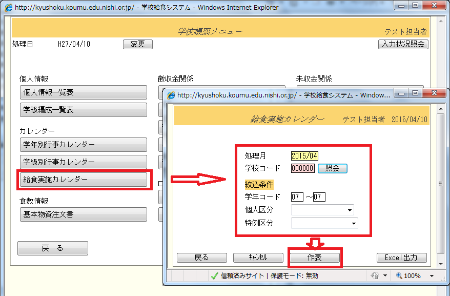(作表画面イメージ)給食実施カレンダー